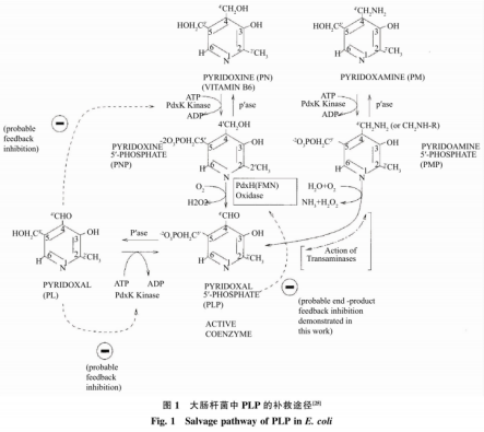 現(xiàn)階段大多數(shù)科學研究以大腸埃希菌為寄主表述GAD,催化反應生產(chǎn)制造GABA。在資產(chǎn)重組菌發(fā)醇全過程中加上一定含量的輔酶磷酸吡哆醛(PLP)可以推動GAD的伸縮,進而提升GAD酶魅力。此外,酶催化反應法即運用GAD將磷酸脫去一分子CO2制取GABA全過程中,在酶轉(zhuǎn)換管理體系中加入一定量的PLP能夠推動酶液或全體細胞的轉(zhuǎn)換舊。有學者報導了在大腸埃希菌發(fā)醇全過程中同時加上0.02mmol/LPLP后,GABA生產(chǎn)量是對比的2.0~2.5倍??墒荘LP價格比較貴,在進行發(fā)酵全過程和酶轉(zhuǎn)換管理體系中同時加上毫無疑問大大增加產(chǎn)品成本。因為大腸埃希菌本身具有吡哆醛蛋白激酶(PdxK)遺傳基因和硫酸銨吡哆醇抗霉素(PdxH)遺傳基因,進而產(chǎn)生PLP挽救方式(見圖1)。輔酶磷酸激酶吡哆醇(PN)、吡哆胺(PM)和吡哆醛(PL)上57羥甲基根據(jù)PdxK使其磷酸化,轉(zhuǎn)化成相應的輔酶中問體硫酸銨吡哆醇(PNP)和硫酸銨吡哆胺(PMP)及其輔酶磷酸吡哆醛(PLP),PdxH進一步催化反應PNP或PMP的氧化還原反應,轉(zhuǎn)化成輔酶PLP,輔酶PLP的提升可推動GAD的伸縮,提升GAD酶魅力。黃燕等科學研究了在大腸埃希菌發(fā)醇全過程中加上PN后,酶活是對照實驗(不加上PN)的1.8倍。