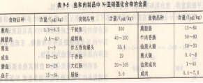 魚和肉制品在腌漬和烤制生產(chǎn)過程中,添加的亞硝酸鹽和亞硝酸鈉可與蛋白質(zhì)分解造成的胺反映,產(chǎn)生N-亞硝基化學(xué)物質(zhì),如吡咯亞硝酸(NPYR)和二甲基亞硝酸(NDMA)等。尤其是易腐爛的魚和肉類食品,可降解性形成很多的丙烯胺,在其中包含二甲胺、三甲胺、纈氨酸、腐胺、脂環(huán)族聚胺、精胺、吡咯烷、羥基乙酰-1-甘氨酸和膠原等。這種化學(xué)物質(zhì)與加上的亞硝酸鈉及食用鹽中普遍存在的亞硝酸鈉等功能可轉(zhuǎn)化成N-亞硝基化學(xué)物質(zhì)。腌制品假如再用煙薰,則N-亞硝基化學(xué)物質(zhì)成分將高些。一些食材中N-亞硝基化學(xué)物質(zhì)成分見表9—5。