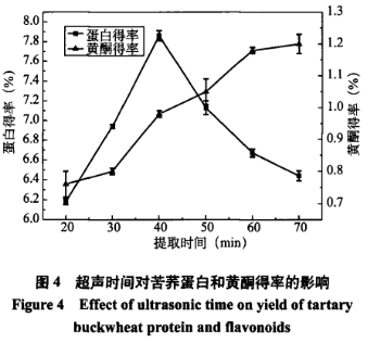 ④時(shí)間對(duì)苦蕎麥蛋白質(zhì)和黃酮類化合物、多糖類化學(xué)物質(zhì)超聲波輔助同歩獲取的危害