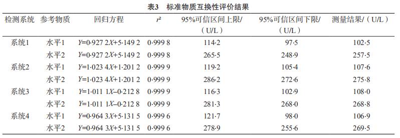各系統(tǒng)軟件線性回歸方程的r2>0.009 5,精確測量結(jié)果坐落于95%可信區(qū)間上、低限內(nèi)。見表3。