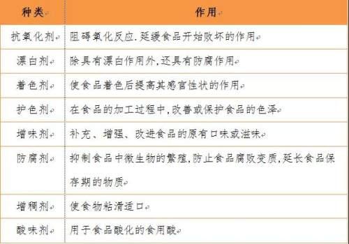 在我國食用添加劑的界定就是指為提升食物質(zhì)量和色香味俱全及防腐蝕、冷藏、制作工藝的須要而添加食物中的化學(xué)合成或是純天然化學(xué)物質(zhì)。常見食用添加劑的類別以及功效分別是: