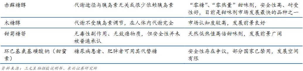 受環(huán)境保護、市場需求、生產(chǎn)工藝或投資等多個方面要素的危害,不一樣甜味素所面對的領域門坎不一樣?,F(xiàn)階段被普遍采用的阿斯巴甜、安賽蜜、三氯蔗糖和赤蘚糖醇這四種代糖的投入門坎和技術性門坎均較高,市場競爭堡壘較強,而加工工藝完善或比較簡潔的山梨糖醇、甜菊糖苷和羅漢果甜苷所規(guī)定的投入門坎較低,市場競爭堡壘較差。
