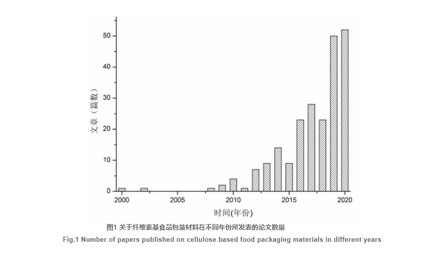 現(xiàn)階段甲基纖維素提取液食品包裝材料中的使用已經(jīng)有報(bào)導(dǎo),包含來(lái)自木料、棉絮、棉短絨、干草、麥草、蒲棒、麻、桑皮、楮皮和蔗渣等的甲基纖維素的提取液的運(yùn)用。據(jù)Web of Science統(tǒng)計(jì)分析,近些年不一樣我國(guó)有關(guān)甲基纖維素基食品包裝材料原材料所刊登的文章總數(shù)如下圖所示(圖1和圖2),逐漸增加的發(fā)展趨勢(shì)及其不一樣國(guó)家的有關(guān)科研成果充分說(shuō)明甲基纖維素基食品包裝材料原材料愈來(lái)愈獲得重視,特別是在在資本主義國(guó)家,食品衛(wèi)生安全和環(huán)境保護(hù)衛(wèi)生要求較高,生物降解的食品包裝材料原材料日益普遍,我國(guó)居第一位,由此可見在我國(guó)對(duì)纖維的分析和使用較多。甲基纖維素在食品類包裝制品中增強(qiáng)了原材料的結(jié)構(gòu)力學(xué)抗壓強(qiáng)度、高阻隔、抑菌性、可徹底溶解性等特性,若挑選合理的配制辦法和合理性的總體設(shè)計(jì),甲基纖維素基食品包裝材料原材料的運(yùn)用可能更加普遍。文中根據(jù)具體描述根據(jù)甲基纖維素提取液的食品包裝材料原材料的配制和特性有關(guān)的參考文獻(xiàn),簡(jiǎn)述了甲基纖維素、微化學(xué)纖維甲基纖維素、細(xì)菌纖維素近些年在食品包裝材料行業(yè)的研究成果。