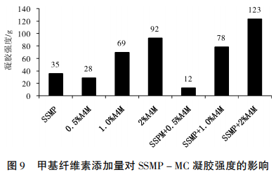 如圖所示9所顯示,鹽溶性蛋白質(zhì)管理體系加上不一樣比率的羧甲基纖維素后復(fù)合型疑膠的疑膠抗壓強(qiáng)度有不一樣的轉(zhuǎn)變。當(dāng)羧甲基纖維素加上量為0.5%時(shí),復(fù)合型疑膠的疑膠抗壓強(qiáng)度不僅沒有提升,反倒減少了;當(dāng)羧甲基纖維素加上量做到1.0%或是高些時(shí),復(fù)合型疑膠的疑膠抗壓強(qiáng)度伴隨著羧甲基纖維素量的提高而不斷地提升;剖析緣故可能是,當(dāng)管理體系以鹽溶性蛋白質(zhì)為主導(dǎo)時(shí),羧甲基纖維素的添加反倒危害了其疑膠網(wǎng)絡(luò)架構(gòu),因而復(fù)合型疑膠的疑膠抗壓強(qiáng)度反倒降低了,當(dāng)羧甲基纖維素加上量超過或超出1.0%時(shí),疑膠抗壓強(qiáng)度伴隨著羧甲基纖維素量的提高而持續(xù)上升,表明當(dāng)羧甲基纖維素管理體系為主要成分時(shí),它還可以提升鹽溶性蛋白質(zhì)的疑膠抗壓強(qiáng)度。