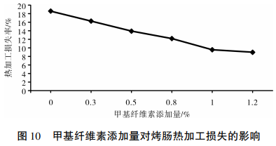 肉食品熱處理損害是點(diǎn)評產(chǎn)品質(zhì)量優(yōu)劣的核心指標(biāo)值,也是影響商品榮譽(yù)出品率的關(guān)鍵要素,肉食品除開殘品損害,熱處理損害特別是在關(guān)鍵。熱處理損害也是肉食品生產(chǎn)廠家評定一種增粘劑或是增稠劑質(zhì)量優(yōu)劣的主要指標(biāo)值。持水溶性和疑膠性好的增粘劑,商品通常在熱處理全過程中可以有更強(qiáng)的持水工作能力,熱處理損害相對性較低??墒乾F(xiàn)階段肉食品廣泛采用的魔芋膠等增粘劑全是冷凝膠,在商品熱處理全過程中疑膠管理體系會(huì)被不一樣水平的毀壞,進(jìn)而影響到商品的穩(wěn)定度和持水溶性。如圖所示10所顯示,臺灣烤腸中加入不一樣比率的羧甲基纖維素都是會(huì)減少其熱處理損害,而且伴隨著羧甲基纖維素加上量的持續(xù)提高而減少,因而針對肉食品來講,羧甲基纖維素能夠 發(fā)揮其熱疑膠特性,在熱處理全過程中更強(qiáng)的鎖定水份,減少損害。