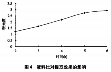 從圖上能夠看得出,萃取法時間越長,獲取實際效果越好。但萃取法時間做到5h后再增加萃取法時間,萃取法實際效果提升比較慢。正交實驗挑選3h、4h、5h為時間要素的三個水準。