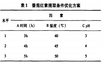 從圖上能夠看得出,當pH小于5時有不錯的獲取實際效果;當pH高過5時獲取實際效果速度減少。因為當pH在3、4、5時番茄素的獲取實際效果較好,因而挑選這三個pH做為正交實驗的水準。