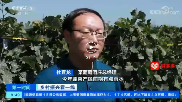 9月20日,CCTV-17頻道《中國(guó)三農(nóng)報(bào)道》頻道。山東蓬萊:釀酒葡萄品種迎大豐收。