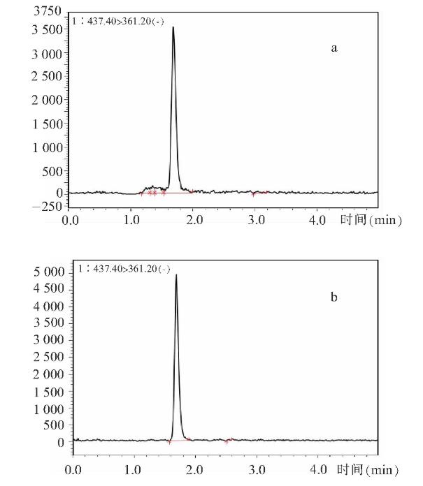 據(jù)參考文獻(xiàn)報(bào)導(dǎo),正己烷脫油法[20]是將待凈化處理滲瀝液以正己烷脫油,滴定劑過膜后上機(jī)操作檢驗(yàn),相比于固相萃取法,在確保檢驗(yàn)結(jié)果準(zhǔn)確度的條件下,可高效節(jié)省試品前解決的時(shí)間和檢驗(yàn)成本費(fèi)。為認(rèn)證正己烷脫油法和固相萃取法的差別,選擇呈陰性牛乳試品,在加標(biāo)濃度值5μg/kg下,各自依照參考文獻(xiàn)中的正己烷脫油法和本實(shí)驗(yàn)中的固相萃取法對(duì)試品開展前解決后上機(jī)操作檢驗(yàn),結(jié)果如圖2所顯示。