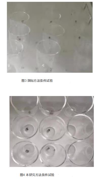 各自選用以上2種辦法開展灰化試驗(yàn),圖3為選用國家行業(yè)標(biāo)準(zhǔn)方式,500℃灰化6h后結(jié)果,圖4為600℃灰化6h后結(jié)果。能夠看得出,選用國家標(biāo)準(zhǔn)方式灰化后的一部分試品仍存有灰黑色,灰化不完全,必須加混和酸開展進(jìn)一步灰化;而在選用600℃灰化6h的標(biāo)準(zhǔn)下,試品可以灰化徹底。因而,本試驗(yàn)挑選使用的灰化標(biāo)準(zhǔn)為600℃灰化6h,不但節(jié)約很多的時(shí)間,還防止了氰化鈉、高氯酸的應(yīng)用。