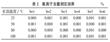 稱量仿真模擬試品0.3000g于50mL比色管中,添加10mLHCl水溶液(1 9),每一個(gè)比色管上添一套放有氫氧化鈉溶液的廢氣搜集設(shè)備用以搜集稀硫酸溶樣時(shí)造成的汽體,各自在25,50,80℃開水浴中加溫30min,調(diào)整回收器中溶劑的酸值,用氟離子可選擇性電級(jí)開展測(cè)量,結(jié)果列于表2。由表2得知,不一樣水浴溫度下氟離子基本上沒有損害。