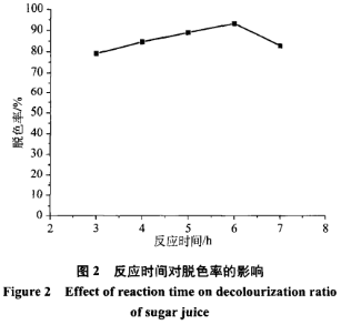 制取反應(yīng)速度對(duì)糖汁褪色作用的干擾規(guī)律性如圖2所顯示。能夠看得出,伴隨著制取反應(yīng)速度的上升,糖汁褪色率慢慢上升,褪色率在反應(yīng)速度為6h時(shí)到達(dá)最大,接著褪色率伴隨著反應(yīng)速度的增加而逐步降低。關(guān)鍵由于殼聚糖與蒙脫土的復(fù)合型是一個(gè)穩(wěn)定平衡全過程,反映原始,因?yàn)闅ぞ厶窍鄬?duì)分子質(zhì)量非常大,殼聚糖與蒙脫土的復(fù)合型必須 一定的時(shí)間,當(dāng)制取反應(yīng)速度為6h時(shí),殼聚糖的承載量較大,這時(shí)能夠 覺得反映已達(dá)均衡;當(dāng)響應(yīng)時(shí)間超出6h以后,負(fù)荷在蒙脫土表層的一部分殼聚糖很有可能發(fā)生了吸附或溶解等狀況,造成 殼聚糖承載量降低,褪色實(shí)際效果也隨之降低。因而,原材料制取反應(yīng)速度以6h為宜。