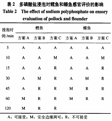 4、多聚磷酸鹽泡浸對銀鱈魚、鰈魚感觀評論的危害