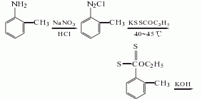 由鄰甲苯胺經(jīng)重氮化、酯化、水解而得。
