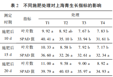 1 不同施肥處理對上海青和生菜生長指標(biāo)的影響不同施肥處理后10d、15d、20d,上海青和生菜的生長指標(biāo)測定結(jié)果分別見表2和表3。