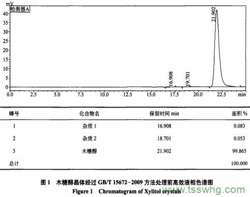 參照GB/T15672—2009中的水解法對木糖醇進行處理,處理前后成分含量結果見表1。