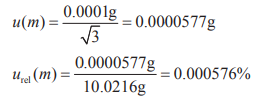 樣品采用萬分之一天平進行稱量,稱樣量為10.0216g(精確至0.0001g),根據(jù)該天平鑒定證書可知其最大允差為±0.0001g,按照均勻分布,采用B類方法評定,則樣品稱量過程中天平引入的標(biāo)準(zhǔn)不確定度和相對不確定度為: