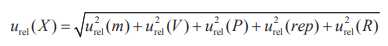 結(jié)合數(shù)學(xué)模型和《化學(xué)分析中不確定度的評估指南》,氣相色譜法測定鮮馬奶中棕櫚酸含量的相對標(biāo)準(zhǔn)不確定度的計算公式為: