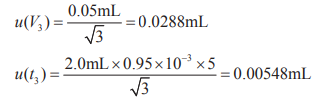 ③由于采用的分度吸量管規(guī)格與②中相同,且吸取的2.0mL上清液主要為正己烷,故計算移液管的不確定度和由溫度引起的體積標(biāo)準(zhǔn)不確定度參照②中的算法進行: