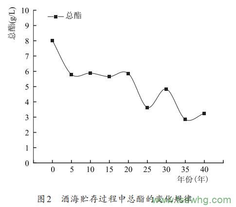 2.3酒海貯存過程中總酯的變化規(guī)律(圖2)