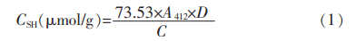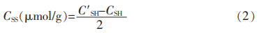 式中:C′SH—總巰基含量,μmol/g;CSH—游離巰基含量,μmol/g。