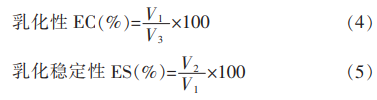 式中:V1—乳化層體積,mL;V2—30min后乳化層體積,mL;V3—液體總體積,mL。