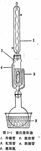 (2)樣品測(cè)定:將濾紙筒放入脂肪抽提器的抽提筒內(nèi),連接已干燥至恒重的接收瓶,由抽提器冷凝管上端加入無(wú)水乙醚或石油醚至瓶?jī)?nèi)容積的2/3處,于水浴上加熱,使乙醚或石油醚不斷回流提取(6~8次/h),一般抽提6~12h。