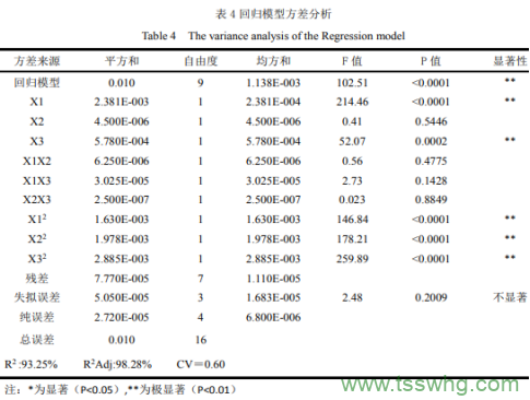 (1)響應(yīng)面試驗設(shè)計及結(jié)果分析