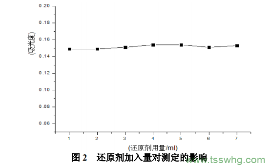 取 7 個 25 mL 容量瓶,在每一個容量中準(zhǔn)確移取 2.00 mL 鐵的標(biāo)準(zhǔn)溶液,然后再依次加入 5.00 mL 乙酸-乙酸鈉緩沖溶液 2.00mL 鄰二氮菲,最后依次分別加入 1.00 mL、2.00 mL、3.00 mL、4.00 mL、5.00 mL、6.00 mL、7.00 mL 抗壞血酸,最后定容至刻線,搖勻放置 15 min 后于 510 nm 處測其吸光度。