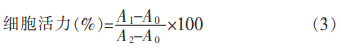 式中,A1—實(shí)驗(yàn)孔吸光度值(OD值);A2—對(duì)比空吸光值(OD值);A0—空缺孔吸光度值(OD值)。
