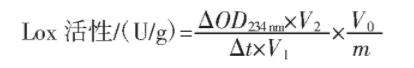 式中:Δt為反應(yīng)速度,min;V1為測(cè)量時(shí)粗酶液的增加量,mL;V2為反映管理體系總?cè)莘e,mL;V0為粗酶萃取液總?cè)莘e,mL;m為試品品質(zhì),g;ΔOD234nm為234nm下Δt時(shí)間內(nèi)光密度值的轉(zhuǎn)變。