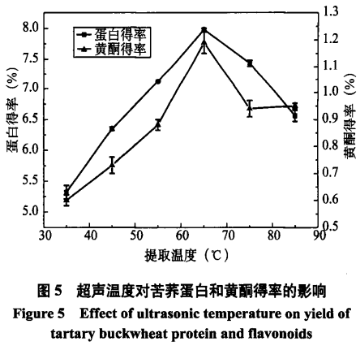 ⑤溫度對(duì)苦蕎麥蛋白質(zhì)和黃酮類化合物、多糖類化學(xué)物質(zhì)超聲波輔助同歩獲取的危害