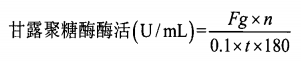 式中:Fg-由標曲查出來的甘露糖mg數(shù)、n-稀釋倍數(shù)、0.1-酶液mL數(shù)、t-控溫時間、180-甘露糖相對分子質(zhì)量。