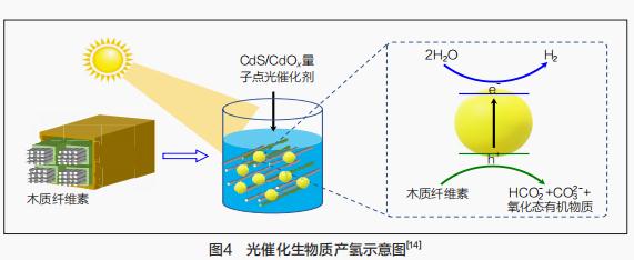運用生物質燃料做為產(chǎn)氫的原材料也是完成生物質燃料資源化再生的重要途徑。在KOH水溶液中,CdS/CdOx量子點技術納米二氧化鈦可以在能見光的作用下立即催化反應未通過前處理的生物質燃料溶解產(chǎn)氫(見圖4),但現(xiàn)階段產(chǎn)氫高效率依然很低。Zhang等創(chuàng)建了將生物質燃料經(jīng)過苯甲酸轉換為氡氣的新策略。第一步轉換選用帶有小量二甲基亞砜(DMSO,摩爾分數(shù)為1%)的稀鹽酸水溶液(0.7wt%)和NaVO3在髙壓O2(3MPa)氣氛將生物質燃料轉換為苯甲酸。第二步轉換運用均相銥金屬催化劑將苯甲酸溶解為氡氣。運用該對策轉換小麥秸稈時,氡氣的產(chǎn)出率達到95%。