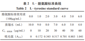 在光波長(zhǎng)275nm下,測(cè)得OD值A(chǔ),結(jié)果如表2。