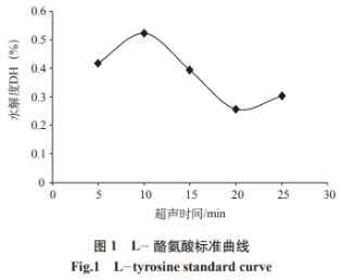 由圖2,圖3得知,超聲波時(shí)間的更改水解度和復(fù)原力都遭受了危害,水解度在超聲波時(shí)間為10min的情況下較大,以后的由于時(shí)間提高,復(fù)原力降低顯著,可能是酶降解,水解度降低;復(fù)原力在超聲波時(shí)間為15min的情況下較大,其復(fù)原力最強(qiáng)。綜合性考慮到,覺(jué)得超聲波時(shí)間10min更為適合。