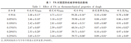 總的來說,加上酚酸促使面糊的平穩(wěn)時間減少,可靠性被毀壞,且伴隨著酚酸加上量的提升,可靠性慢慢減少,這與Jackson等的分析結論一致。而加上酚酸會使面糊的回生值上升,說明FA和CA會直接影響木薯淀粉分子結構的分子結構,促使木薯淀粉糊疑膠化水平上升,分子結構的排序越來越比較井然有序,與王玉娜等的分析結論一致。