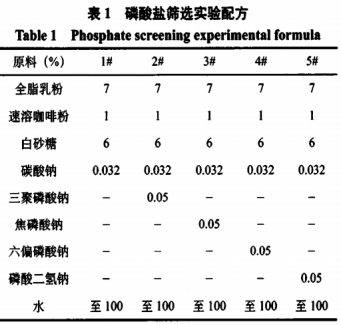 聚磷酸鹽具備一定pH,運用于牛奶咖啡飲品中,能夠 充分發(fā)揮其陽離子效用,在系統(tǒng)中可以帶來一定的調(diào)節(jié)作用,提升牛奶咖啡飲品的溶解性和可靠性。本實驗操作中選擇三聚磷酸鈉、焦磷酸鈉、六偏磷酸鈉、磷酸二氫鈉四種聚磷酸鹽開展試驗,運用可靠性檢驗方式挑選出可靠性實際效果最佳的聚磷酸鹽。