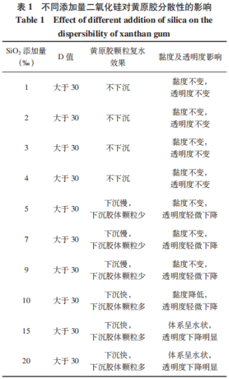 不一樣加上量SiO2對卡拉膠分散性危害的檢驗(yàn)結(jié)果見表1。