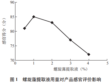 不一樣靈芝孢子粉萃取液使用量對運動型飲料的感觀評分危害,見圖1所顯示。從圖1得知,當(dāng)靈芝孢子粉萃取液使用量為1%時,感觀評分最大,這時水溶液呈淺黃翠綠色,靈芝孢子粉味道突顯,當(dāng)使用量擴大時,水溶液色調(diào)加重,渾濁感顯著,因而挑選靈芝孢子粉萃取液使用量0.5%、1%、2%做為正交實驗調(diào)查水準。