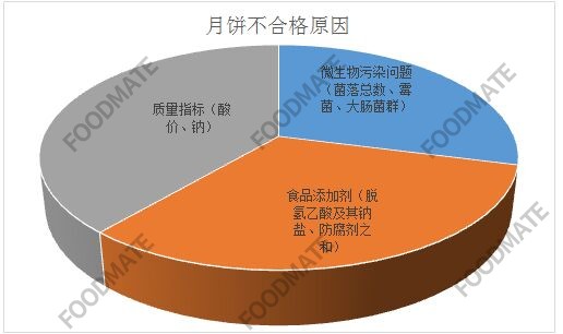 抽樣檢驗發(fā)覺月餅不過關(guān)因素具體涉及到微生物菌種嚴重污染難題(菌落總數(shù)、黃曲霉菌、大腸桿菌),食用添加劑(脫氫乙酸以及醋酸鹽、添加劑之和),質(zhì)量標準(過氧化值、鈉)這三層面難題。在其中,質(zhì)量標準難題絕大部分,有12批號。