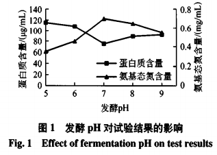 本實(shí)驗(yàn)將固定不動料液比1:4(g/mL)、發(fā)醇溫度37℃和葡萄糖水加上量2%,提純后冷凍菌苗注射于LB液體培養(yǎng)基中活性,配制至菌懸浮液濃度值為107cfu/mL。各自以發(fā)醇pH、接種量和發(fā)酵時間為自變量,開展單要素實(shí)驗(yàn),每一組實(shí)驗(yàn)采用三個平行面和一組空白試驗(yàn),在其中發(fā)醇pH為5、6、7、8、9;接種量為2%、4%、6%、8%、10%;發(fā)酵時間為12h、24h、36h、48h、60h??瞻自囼?yàn)組為發(fā)醇pH7、接種量O%、發(fā)酵時間12h、24h、36h、48h、60h各一個。以發(fā)酵物中羥基態(tài)氮成分為測量指標(biāo)值,科學(xué)研究三個要素對杜蠣發(fā)醇實(shí)際效果的危害,對發(fā)醇加工工藝開展基本提升。