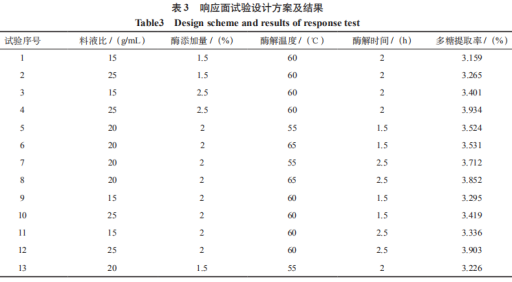 經(jīng)手機軟件預測分析剖析獲得纖維素酶獲取猴頭菇含糖量的最好情況為:料液比23.97g/mL,酶加上量2.37%,酶解溫度61.90℃,酶解時間2.47h,在這里前提下猴頭菇含糖量獲取率做到3.976%,依據(jù)具體實驗實際操作的便捷與概率,可將結(jié)果調(diào)整為料液比25g/mL,酶加上量2.5%,酶解溫度60℃,酶解時間2.5h。在這里調(diào)整后的最好情況下反復三次平行面實驗,獲得猴頭菇含糖量獲取率均值為3.902%,相對偏差為1.86%,表明實體模型估計值與實驗具體值合乎度較高,該回歸分析主要參數(shù)有效,能真正反應各要素對猴頭菇含糖量獲取的危害。