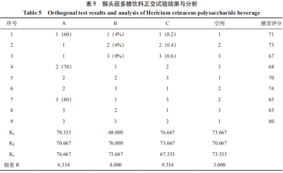 3、猴頭菇含糖量飲品正交實驗結(jié)果與剖析