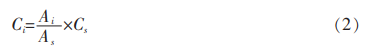 定量分析方式:在5mL發(fā)醇試品中加上濃度值為0.01μg/L的內標物1,2-二氯苯水溶液50μL,試品中各成分口味成分的濃度值可帶入公式計算(2)測算: