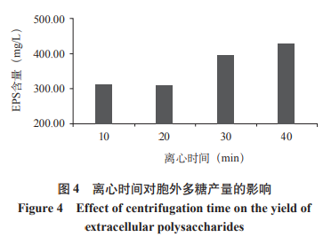 本實(shí)驗(yàn)操作中發(fā)酵物體細(xì)胞分離出來(lái)后,添加50%的三氯乙酸水溶液1/5容積,在16000×g的向心力下各自離心式10min、20min、30min、40min,選擇最優(yōu)控制離心式時(shí)間,如圖所示4所顯示。離心式的時(shí)間選擇30~40min為最好。