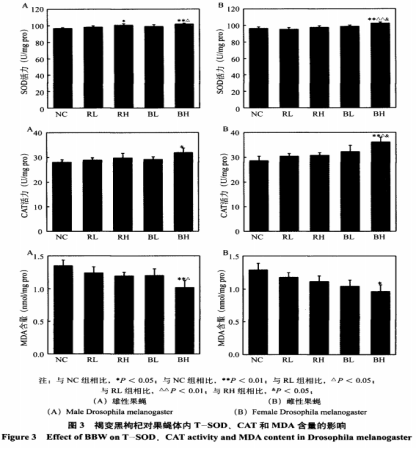 5、褐變野生黑枸杞對家蠅身體SOD.CAT等抗抗霉素魅力及MDA成分的危害