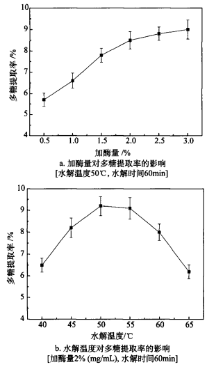 加酶量、水解反應(yīng)溫度、水解反應(yīng)時(shí)間三個(gè)要素對(duì)末水壇海菜含糖量獲取率的危害見圖2。