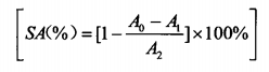 本實(shí)驗(yàn)中DPPH氧自由基消除工作能力測量在參照Sajga等的辦法基本上,稍加修改。汲取1mL待測液,添加2mLDPPH切削液充足混勻,在常溫下遮光30min,在517m處測量該液OD值(Ai),以工業(yè)乙醇做為空缺,與此同時測量lmL標(biāo)準(zhǔn)溶液與2mL工業(yè)乙醇的OD值(Aj)及1mL工業(yè)乙醇和2mLDPPH切削液溶液的OD值(Ac),按住式測算DPPH的清除率(SA)。