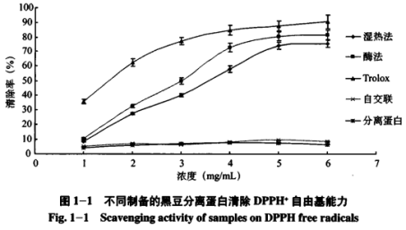 1、不一樣制取的大黑豆分離蛋白消除DPPH氧自由基工作能力